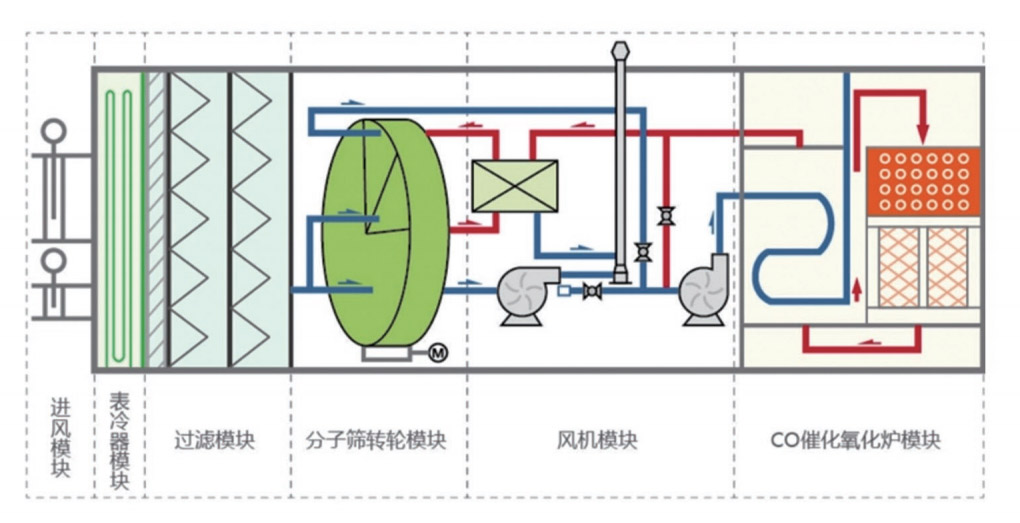 針對中小風(fēng)量VOC廢氣凈化的設(shè)備,采用“沸石轉(zhuǎn)輪濃縮+催化燃燒工藝,模塊化設(shè)計集吸附濃縮、氧化分解、熱能回收、智能控制于一體。