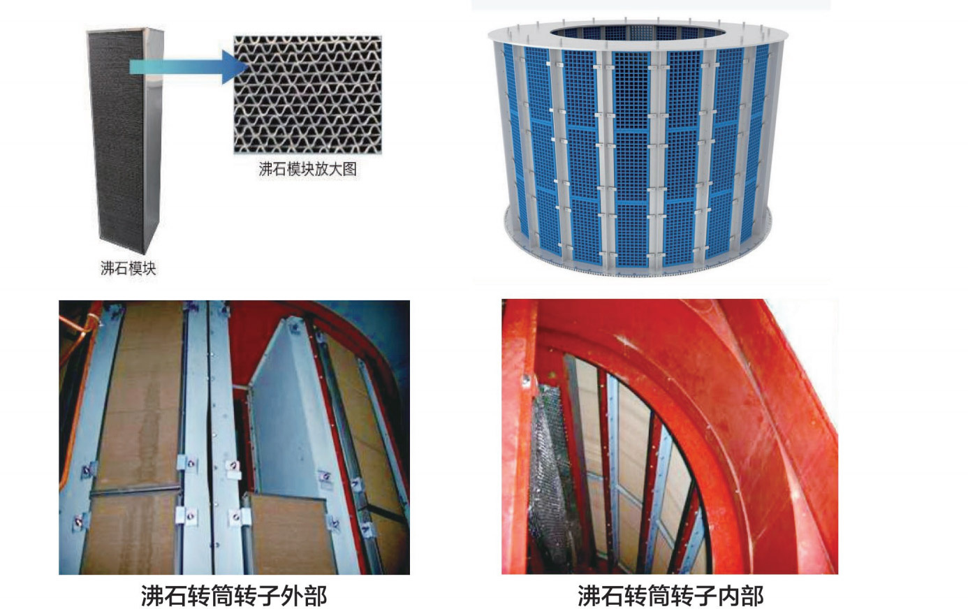 沸石濃縮轉(zhuǎn)筒被分為吸附區(qū)、脫附區(qū)、兩個(gè)功能區(qū)。